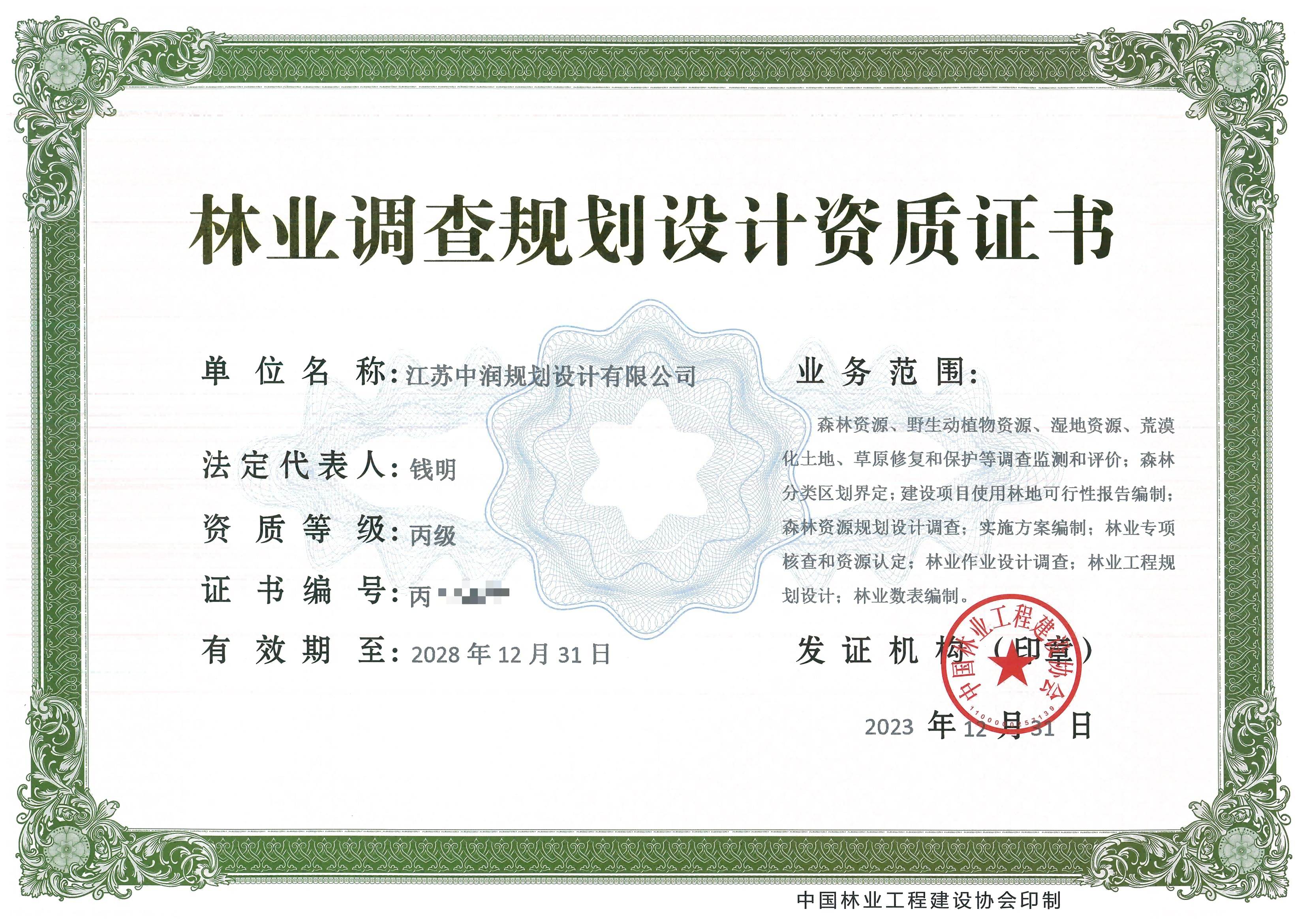 取得林业丙级调查规划设计资质证书